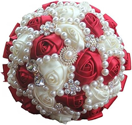 Amazon Com Fystore Bridal Bouquets Holders For Weddings Flowers Elegant Pearl Bride Flower Wedding Bouquet Handmade Crystal Ribbon Bouquet Holder 7 Inch Wine Red Ivory Home Kitchen