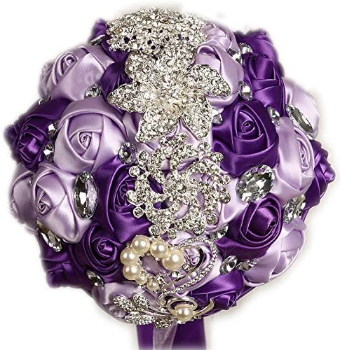 Amazon Com Fystore Bride Bridal Bouquet Brooch Bouquet Bridesmaid Holding Wedding Flowers 18cm Purple Home Kitchen