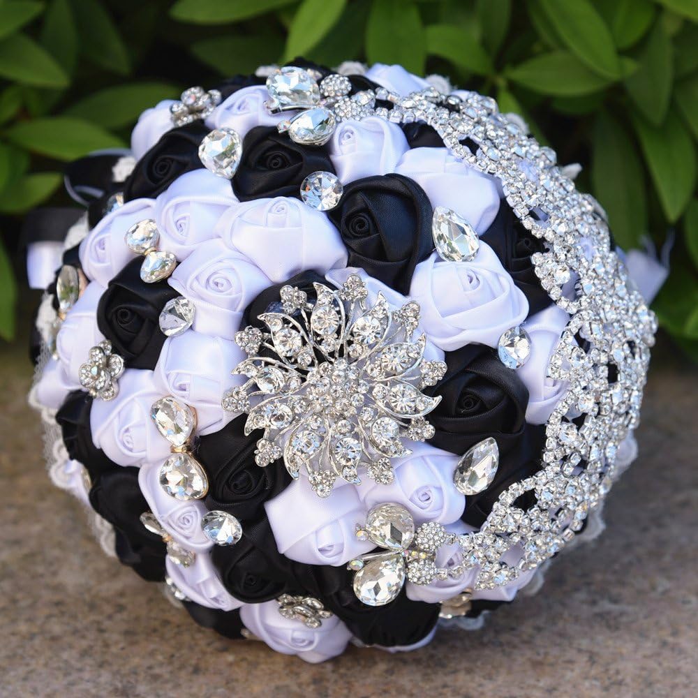 Amazon Com Fystore Wedding Bouquets For Bride Wedding Bride Holding Bouquet Roses With Crystal Diamond Ribbon Artificial Foam Flower Bouquet Black White Home Kitchen