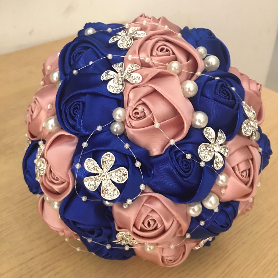 Amazon Com Fystore Wedding Flowers Bride Bouquet Royal Blue Blush Pink Crystal Wedding Rhinestone Brooch Bouquets Brides Hand Holding Home Kitchen
