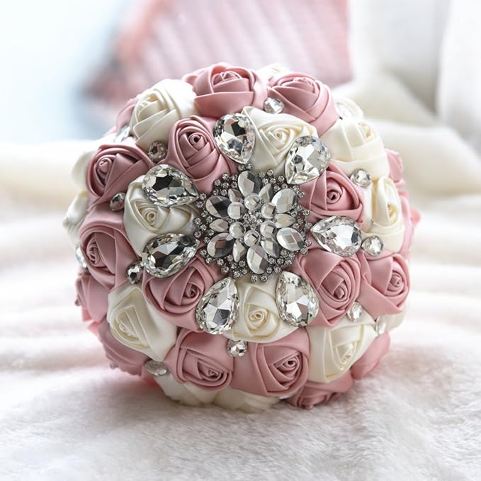 Amazon Com Fystore Multi Color Romantic Bride Wedding Holding Bouquet Peal Diamond Ribbon Wedding Flower Bridal Bouquet Flowers Rose Gold Ivory Home Kitchen
