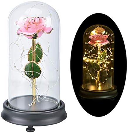 Amazon Com 24k Gold Dipped Rose Everlasting Real Rose In Glass Dome With Led Light Best Gift For Valentines Day Mothers Day Anniversary Wedding Birthday Treating Yourself Pink Home Kitchen