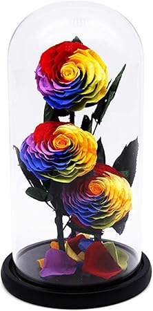 Amazon Com 3 Rainbow Eternal Rose With Petals Preserved Fresh Rose Flower With Glass Dome And Luxury Box Gift For Valentine S Day Anniversary Birthday Mother Day Christmas Home Kitchen