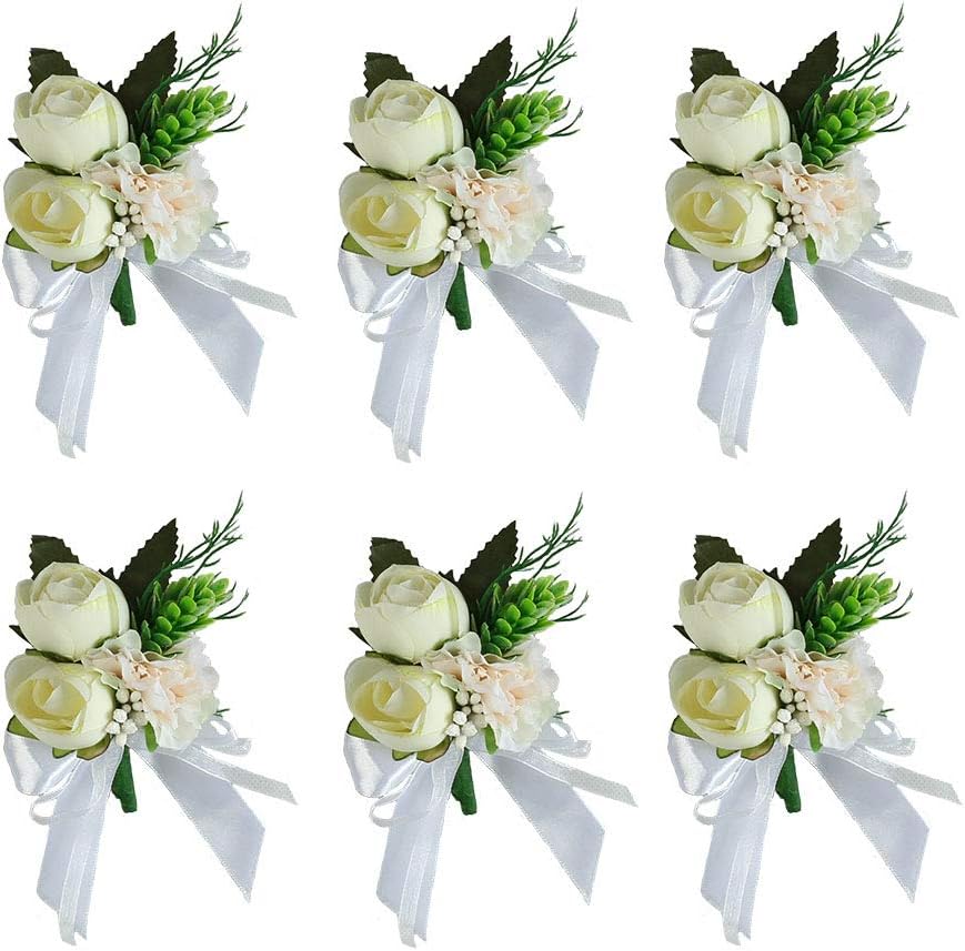 Amazon Com Floroom Set Of 6 White Rose Boutonnieres For Best Men Groom Groomsmen Wedding Prom Home Kitchen
