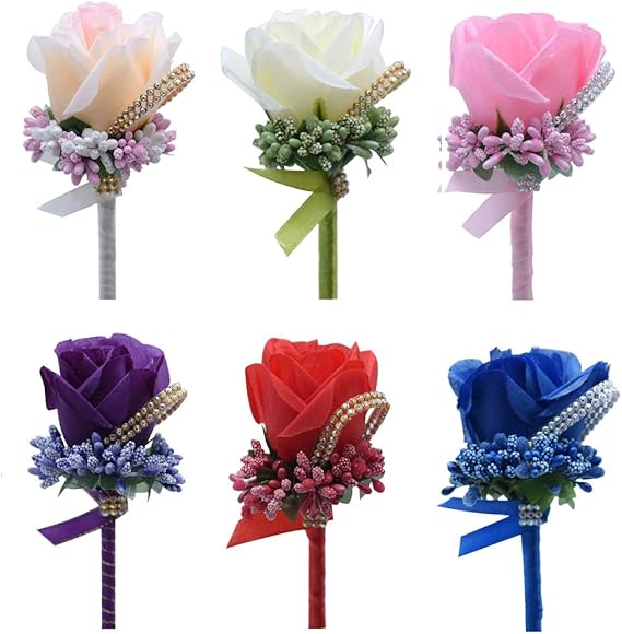 Amazon Com Boutineers For Men Handcrafted Boutonniere For Men Wedding Groomsmen Bride Flowers 6 Pieces Artificial Groom Corsage Wedding Flowers Wedding Prom Party Man Suit Decoration Kitchen Dining