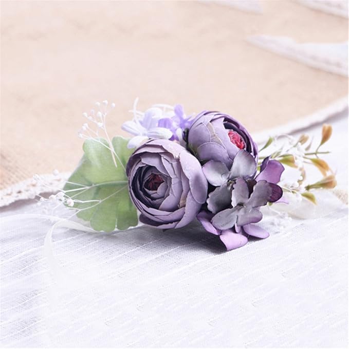 Artificial Silk Flowers Groom Boutonniere Women Bride Wrist Corsage Hand Wedding Flowers Decoration Light Purple Wrist Corsage Home Kitchen Amazon Com