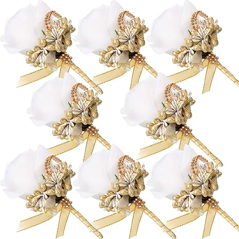 Amazon Com Men Wedding Boutonniere Wedding Flowers Buttonholes Accessories Groom Groomsman Prom Party Suit Decoration 8 White Gold Furniture Decor