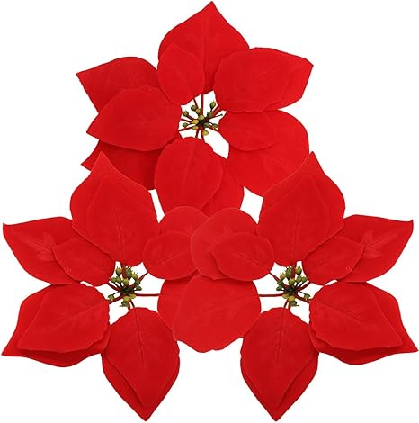 Amazon Com Supla 30 Pcs Velvet Poinsettia Flower Heads 8 3 Bloom Diameter Artificial Poinsettia Silk Floral Heads Christmas Tree Ornaments Diy Holiday Floral Arrangements Home Kitchen