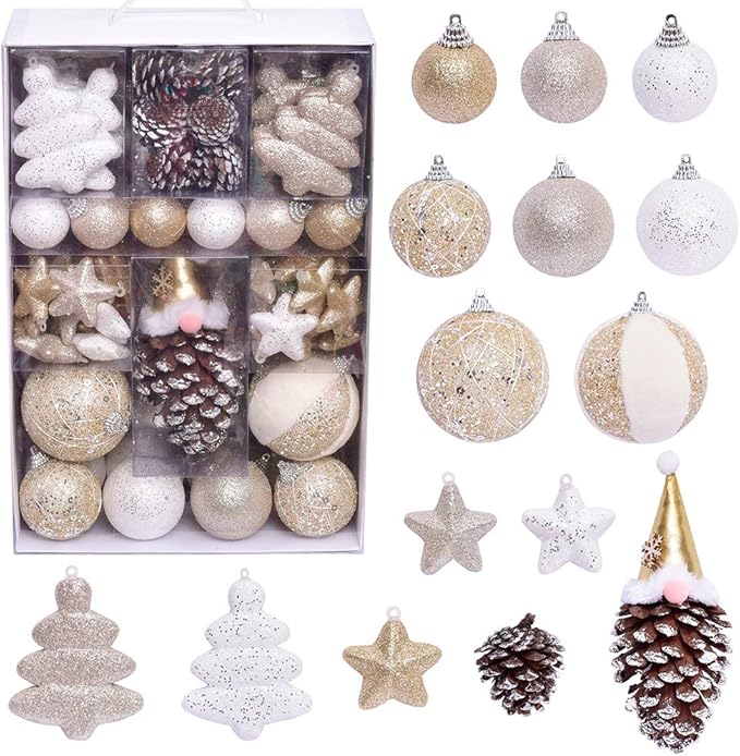 Super Holiday 124 Piece Of Christmas Ornaments Multi Style Shatter Proof And Reusable Christmas Tree Pendant Used For Home Office And Supermarket Etc Golden Kitchen Dining Amazon Com