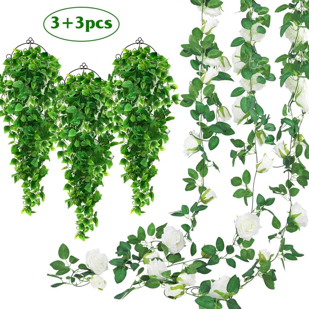 Ageomet 3pcs Artificial Hanging Plants And 3pcs Artificial Rose Vine Fake Hanging Plants Flowers Garland For Outdoor Wedding Arch Garden Wall Decor Home Kitchen Amazon Com