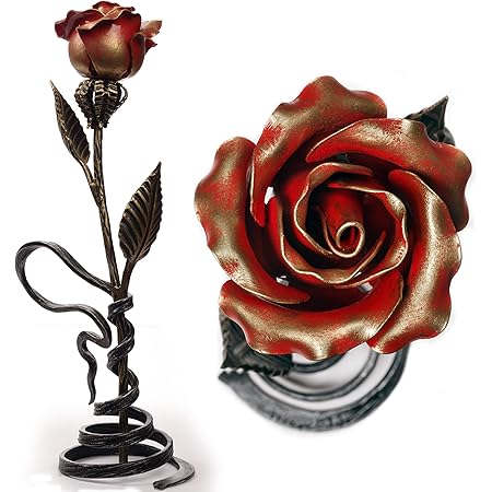 Truly one of a kind metal rose sculpture. Beautiful Gift For Anniversary With Deep Message - Fast delivery to USA. This hand forged flower set will never die and will look as beautiful as on day one forever.