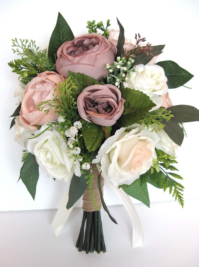 Amazon Com Wedding Bouquet 17 Piece Bridal Set Rustic Bouquet Mauve Taupe Burgundy Blush Greenery Silk Wedding Flowers Bridesmaid Rosesanddreams Home Kitchen