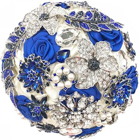 Amazon Com Abbie Home Luxury Wedding Brooch Jewelry Bouquet Royal Blue Bridal Satin Rose Flower Pearls And Sparkling Rhinestone Gem Decoration