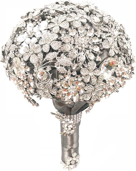 Amazon Com Abbie Home Handmade Luxury Wedding Bridal Rose Jewelry Bouquet Advanced Sparkle Full Rhinestone And Glaring Pearl Covered Bride Brooch Bouquet Grey Home Kitchen
