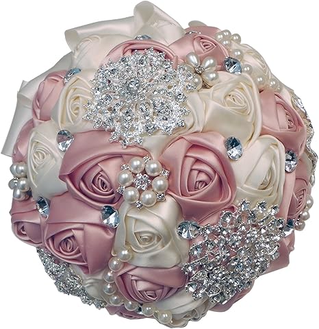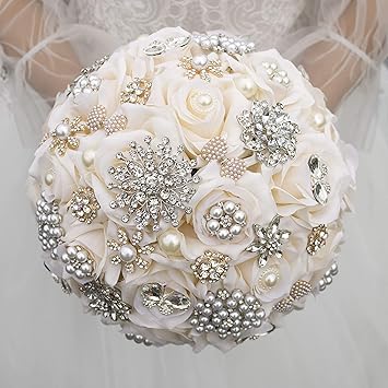 Handle is also wrapped with bling rhinestones to match with the roses which gives this bouquet a supper appealing and decent look. Perfect wedding bouquet for your special day or your daughter. LUXURY DETAIL - the roses are covered with small and large rhinestonesartificial pearls and delicate retro jewelry give this bouquet a sparkle and eye-catching look.