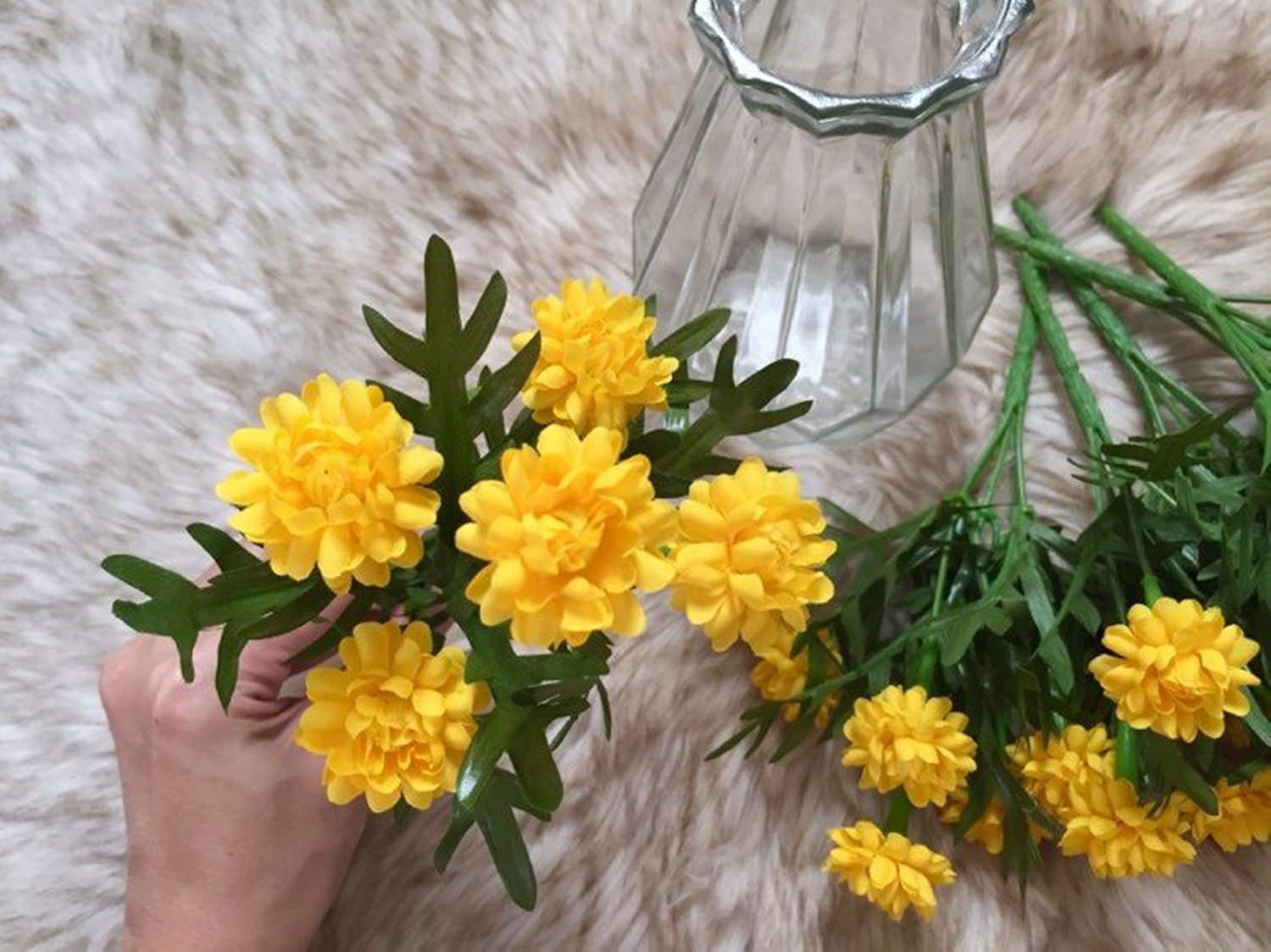 Amazon Com Thai Artificial Yellow Marigold Flower Bunch Artificial Flowers Marigold Flowers Yellow Flower Marigold Yellow Calendula Officinalis 3 Pieces 1 Set Kitchen Dining